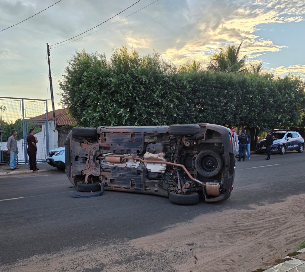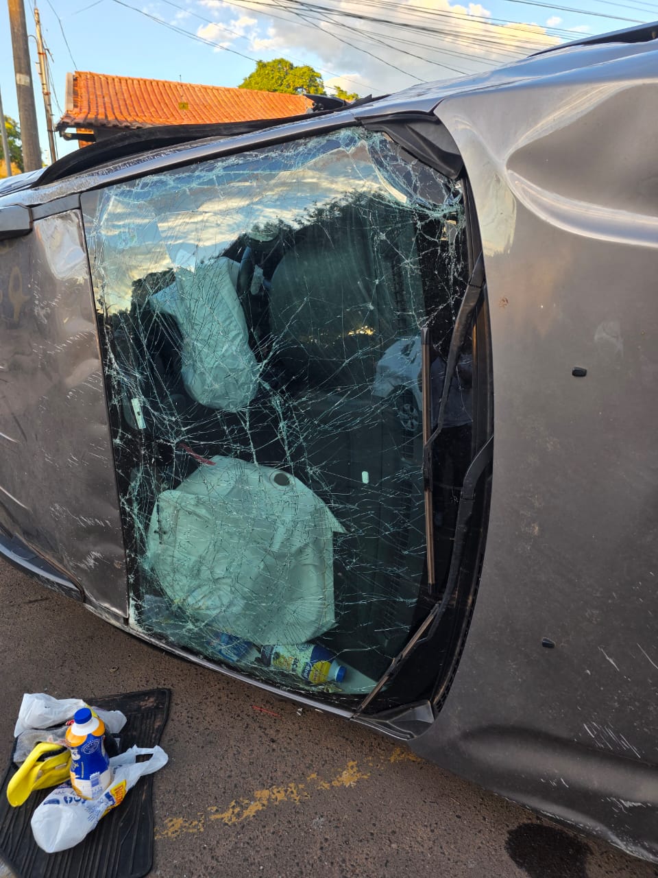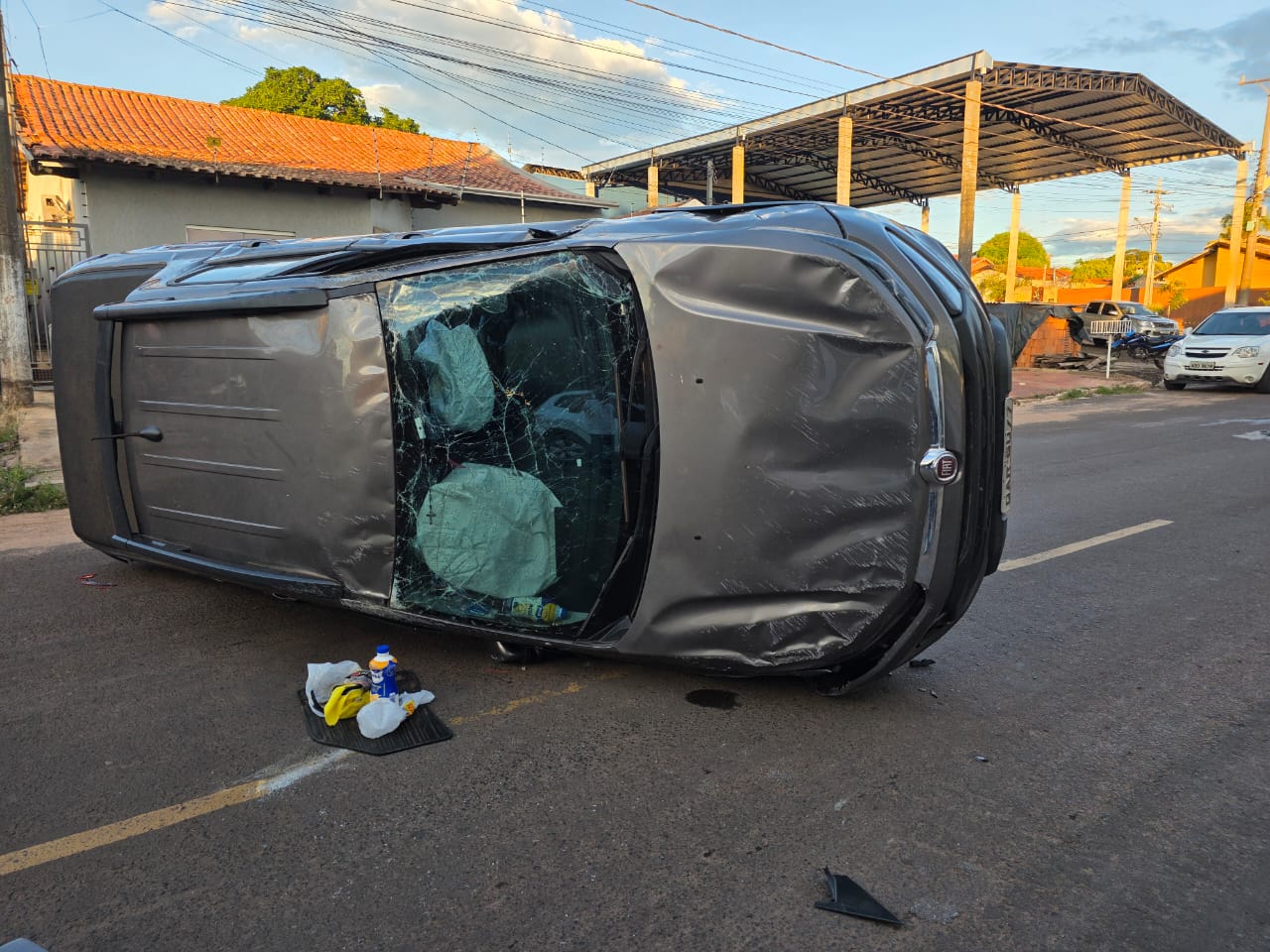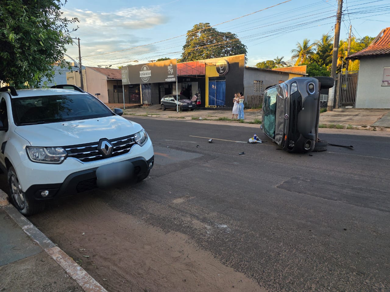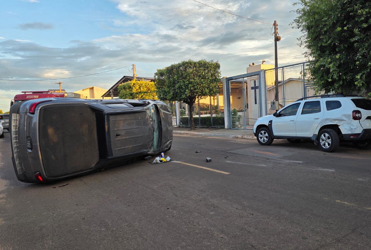 Veículo capota ao desviar de patinete elétrico em avenida de Coxim. Foto: Valdeir Simão/Diário X