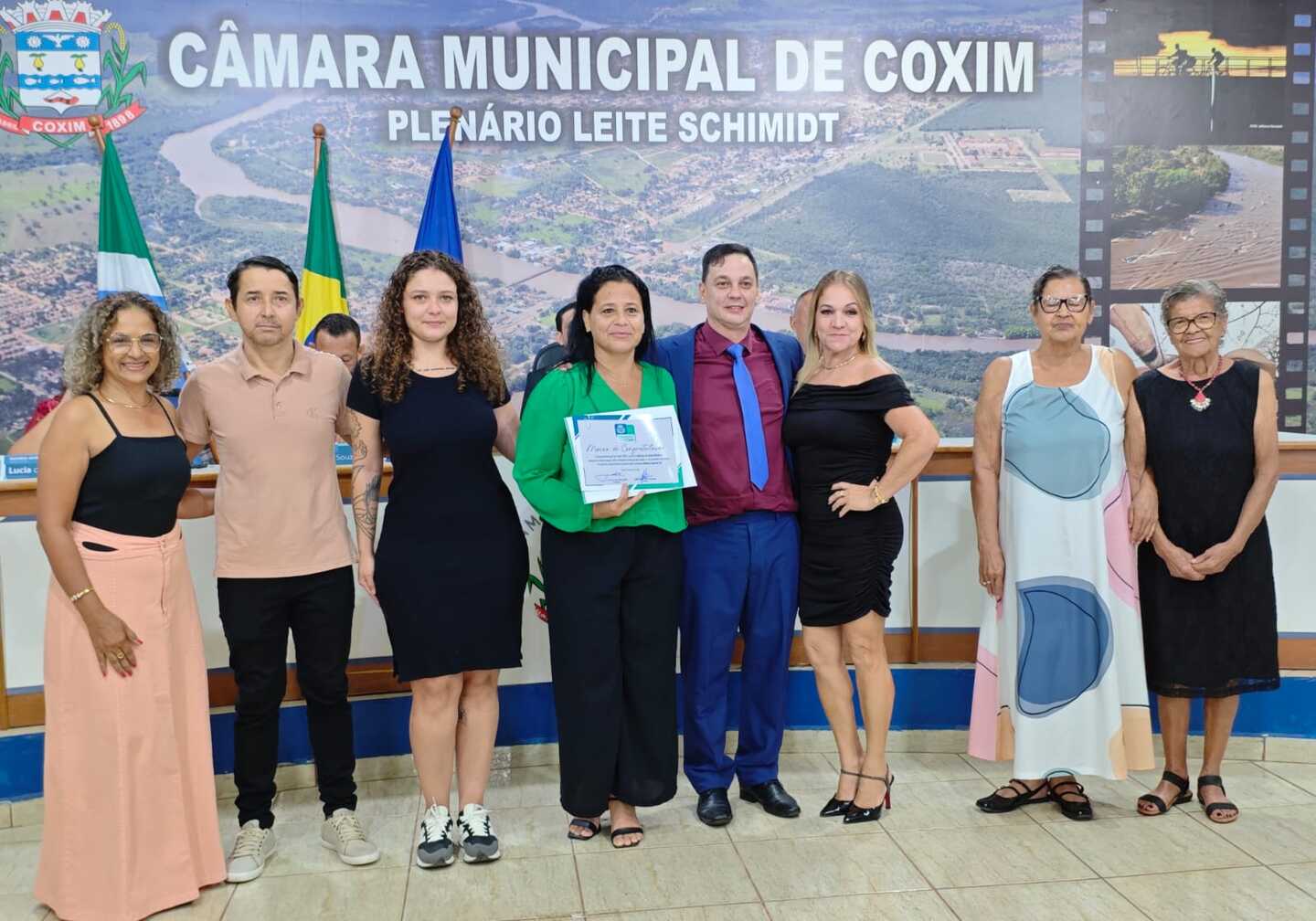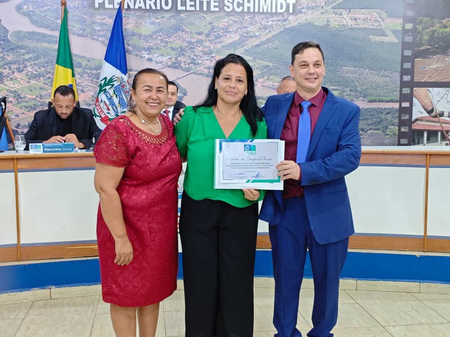 Glenda Melo é homenageada com Moção de Congratulação por indicação do vereador Johnny Guerra Gai. Foto: Valdeir Simão/Diário X