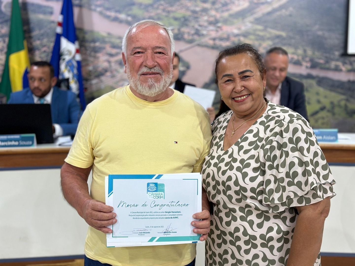 Na noite de segunda-feira, 25 de agosto, o plenário da Câmara Municipal de Coxim, foi palco da solenidade de entrega de Moção de Congratulação, indicada por parlamentares do Poder Legislativo, celebrando e reconhecendo a dedicação de pessoas que se destacaram por suas relevantes contribuições ao Município.
