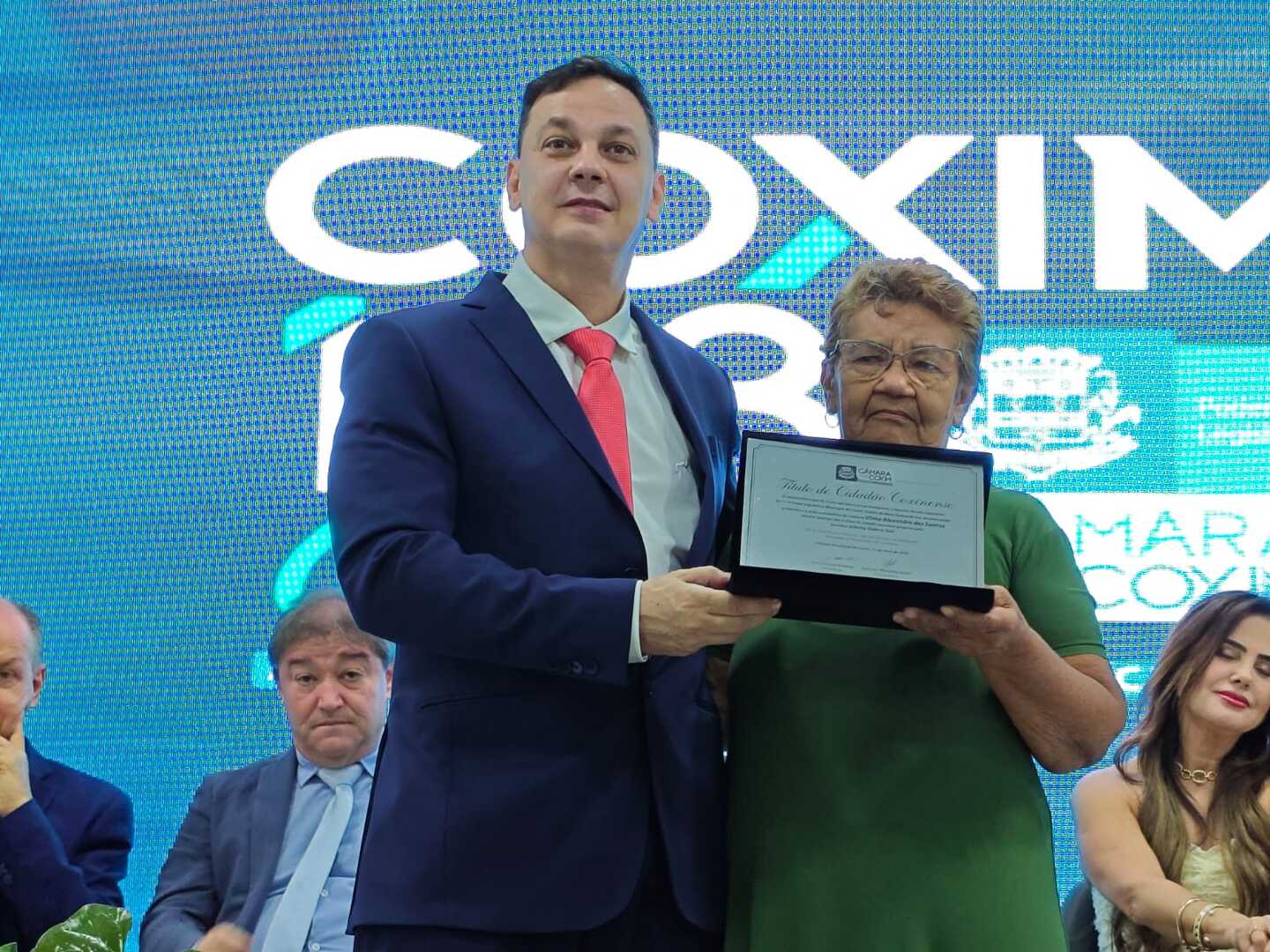 Na ocasião, o vereador Johnny Guerra Gai (PP) concedeu o Título de Cidadã Coxinense à senhora Vilma Alexandre dos Santos. Natural de Rio Verde de Mato Grosso (MS), ela tem 64 anos e mudou-se ainda jovem para Coxim, onde reside há cerca de cinco décadas, construindo uma trajetória de vida pautada pelo trabalho e dedicação à comunidade.