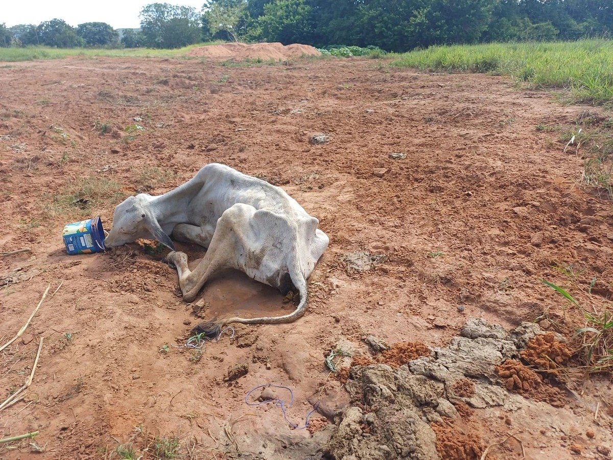 De acordo com a equipe, o animal, uma rês jovem, apresentava extrema debilidade, desidratação, dificuldade respiratória e não possuía condições de locomoção. Além disso, estava exposto ao sol, sem acesso à água e alimentação adequada, evidenciando sofrimento e ausência de cuidados básicos.