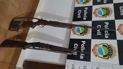 Diante da gravidade dos fatos, uma equipe da Polícia Civil efetuou diligências e capturou o suspeito. Durante a ação, foram localizadas em sua residência duas armas de fogo de calibre .22.